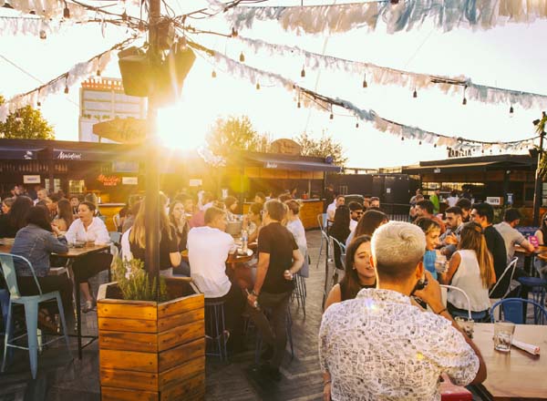 Up here you can enjoy everything from refreshing cocktails and buckets of beer to street food like burgers and tacos.