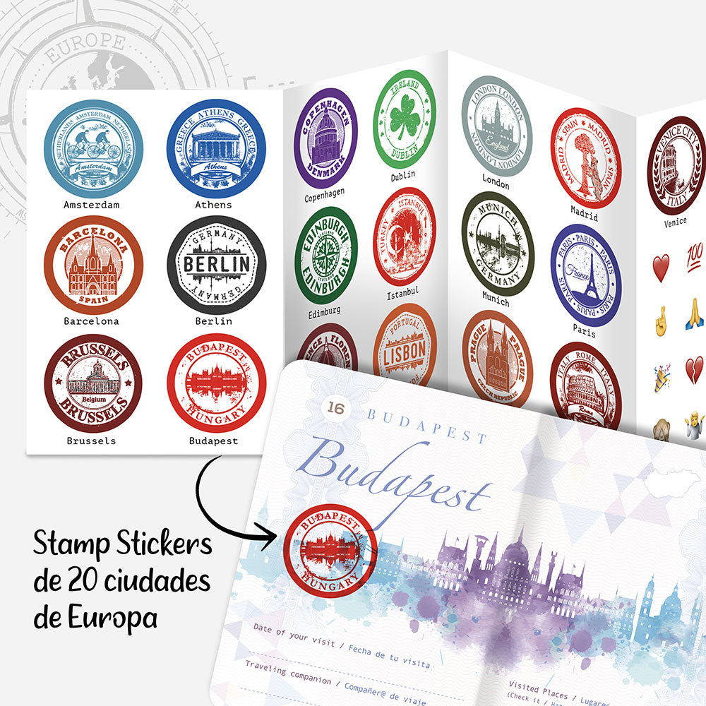 My Travel Passport 🌍 WORLD + EUROPE EDITION 🇪🇺 Are you a true traveler? If you dream of squeezing your experiences around the world and remembering every corner of Europe, this Pack is for you. Collect the memories of your travels around the world and Europe in one place (Pack includes: 1 Box + 2 Passports + 1 flashlight + 2 sheets of stamp-stickers + 1 explanatory booklet).