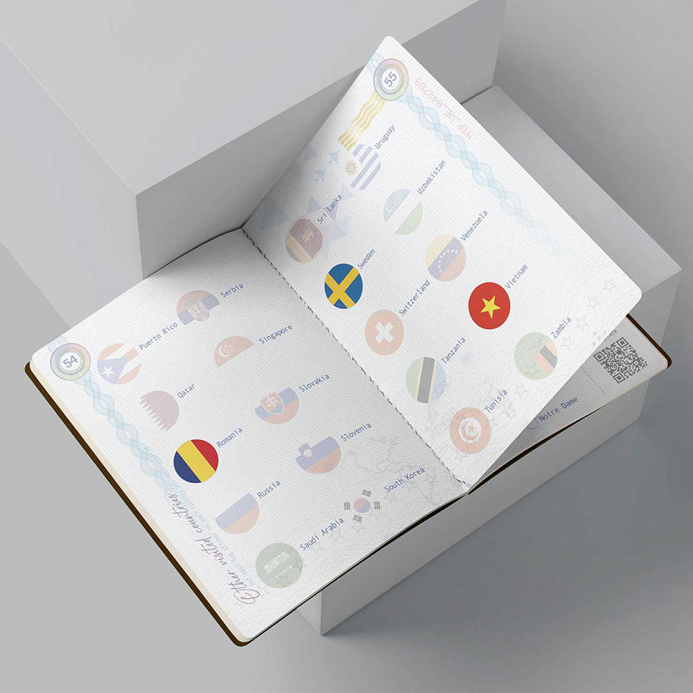 Naturalmente, My Travel Passport è un regalo diverso e speciale per gli amanti dei viaggi. Se volete regalarlo a qualcuno, potete inviarglielo in bianco in modo che possa incollare la sua foto e inserire i suoi dati, oppure potete inviarci la sua foto, i suoi dati e l'indirizzo postale dove glielo invieremo personalizzato.