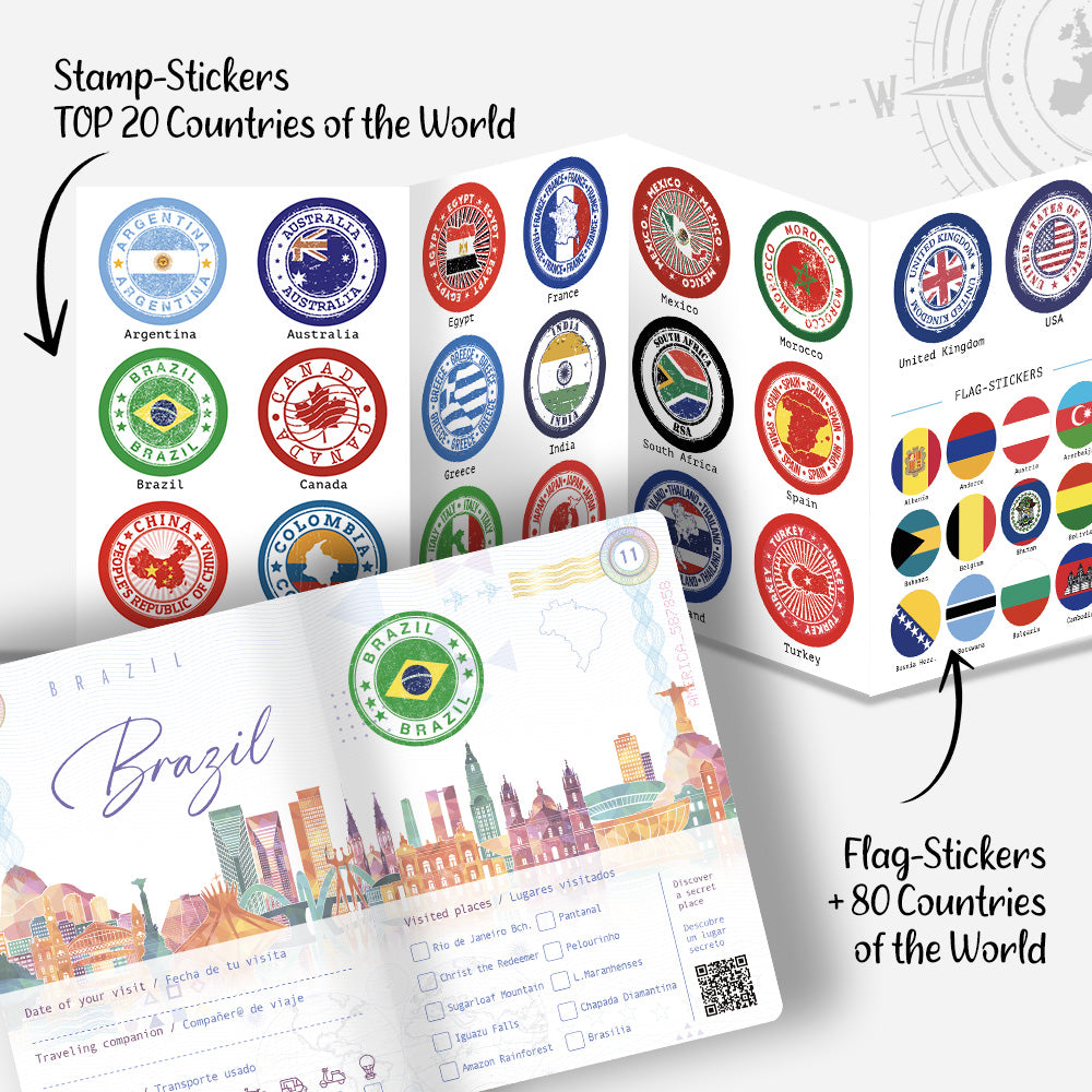 • Incollate i vostri timbri adesivi per timbrare i 20 paesi più visitati