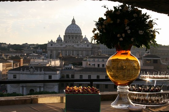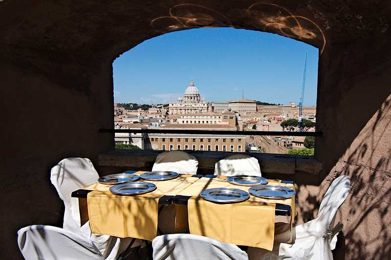 Esta es una experiencia maravillosa, almorzar o tomar un aperitivo dentro de Castel Sant'Angelo, en uno de los mejores bares en la azotea de Roma, con vista al Vaticano, es una experiencia increíble. La comida es tan deliciosa como la vista.